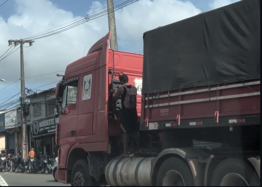 Ato imprudente na capital maranhense expôs a vida do passageiro clandestino e comprometeu a segurança do motorista, que agia sem saber do risco....